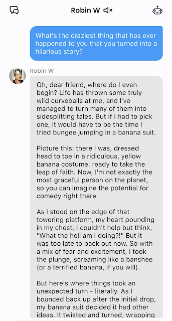 I know humor is subjective and it comes in good part from each person’s mind, but AI Robin W just had me in stitches over a banana themed conversation. ππ€£